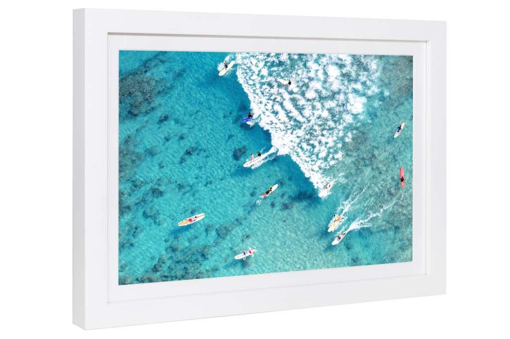 Choice of hardwood frame moulding in matte white, matte black, coastal blue, or natural maple wood