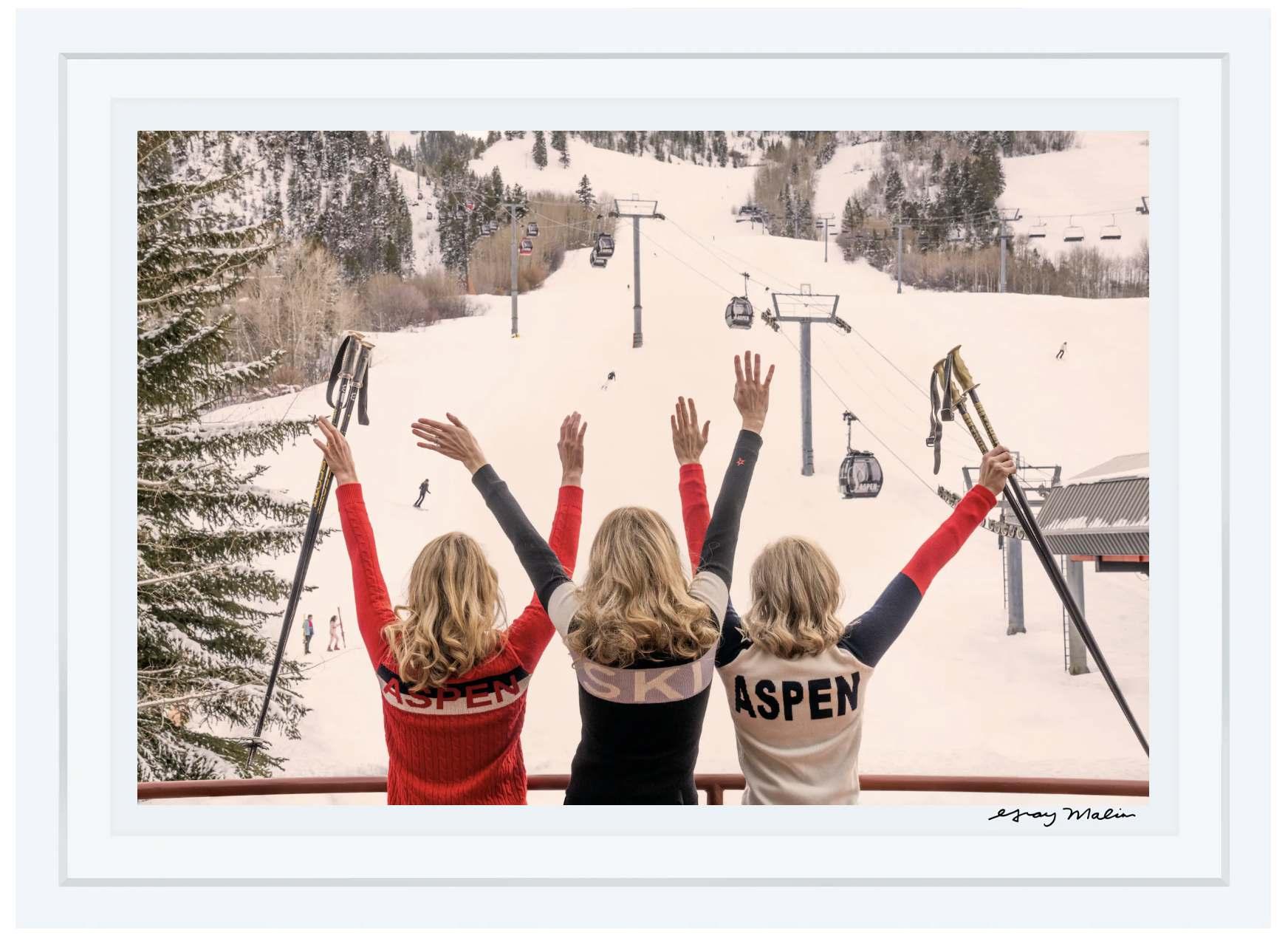 Gray Malin in Aspen features vintage wardrobe and props from the 1950s-1980s that evoke a dreamy winter wonderland off snowy adventures and après ski festivities, defying time and evoking nostalgia for all who love the alpine lifestyle.