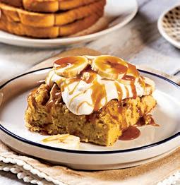 5. To serve, cut the bake into squares and top with a large dollop of whipped cream, banana slices and a drizzle of caramel sauce.