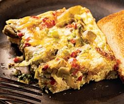 3. Place baking dish on center rack of oven and bake 30–40 minutes, until mixture is set, puffy and light golden brown on top. Tent loosely with foil if top is browning too quickly. Remove from oven and allow to cool slightly.