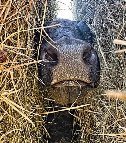 “One of our calves got a little too excited about the new hay and wedged himself between two bales.”