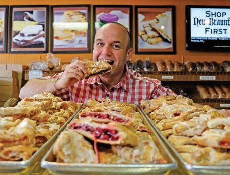 I DIDN’T KNOW what to expect from the oldest bakery in Texas, but it certainly wasn’t a giant slab of cherry strudel bigger than a roof shingle. And yet that’s exactly what I found at Naegelin’s Bakery in New Braunfels— along with a line out the door, a heavenly yeasty smell that could lead a blindfolded squirrel to town and a friendly cashier who was happy to explain the unfamiliar pastries laid out before me.