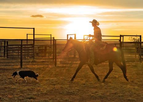 “Hayden Biggerstaff and Jude the cow dog finish pushing cattle to a new pasture at sunset in Crosby County.”