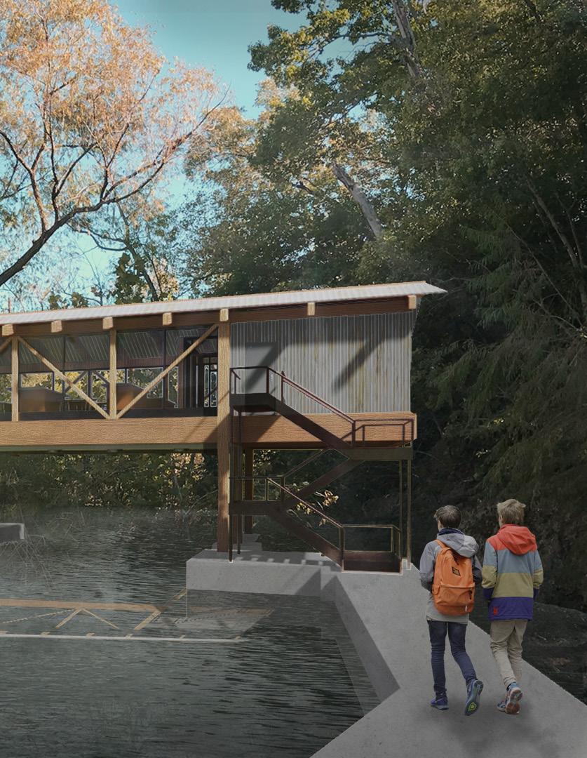 The function of the artist and scientist in society is to challenge the status quo and imagine a brighter future. As a generation defined by the global climate crisis begins to come forth in the world, a comprehensive understanding, respect and symbiosis of the natural world is imperative. This design attempts to utilize the site as a living classroom with pavilion structures as destinations of repose and contemplation.