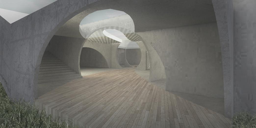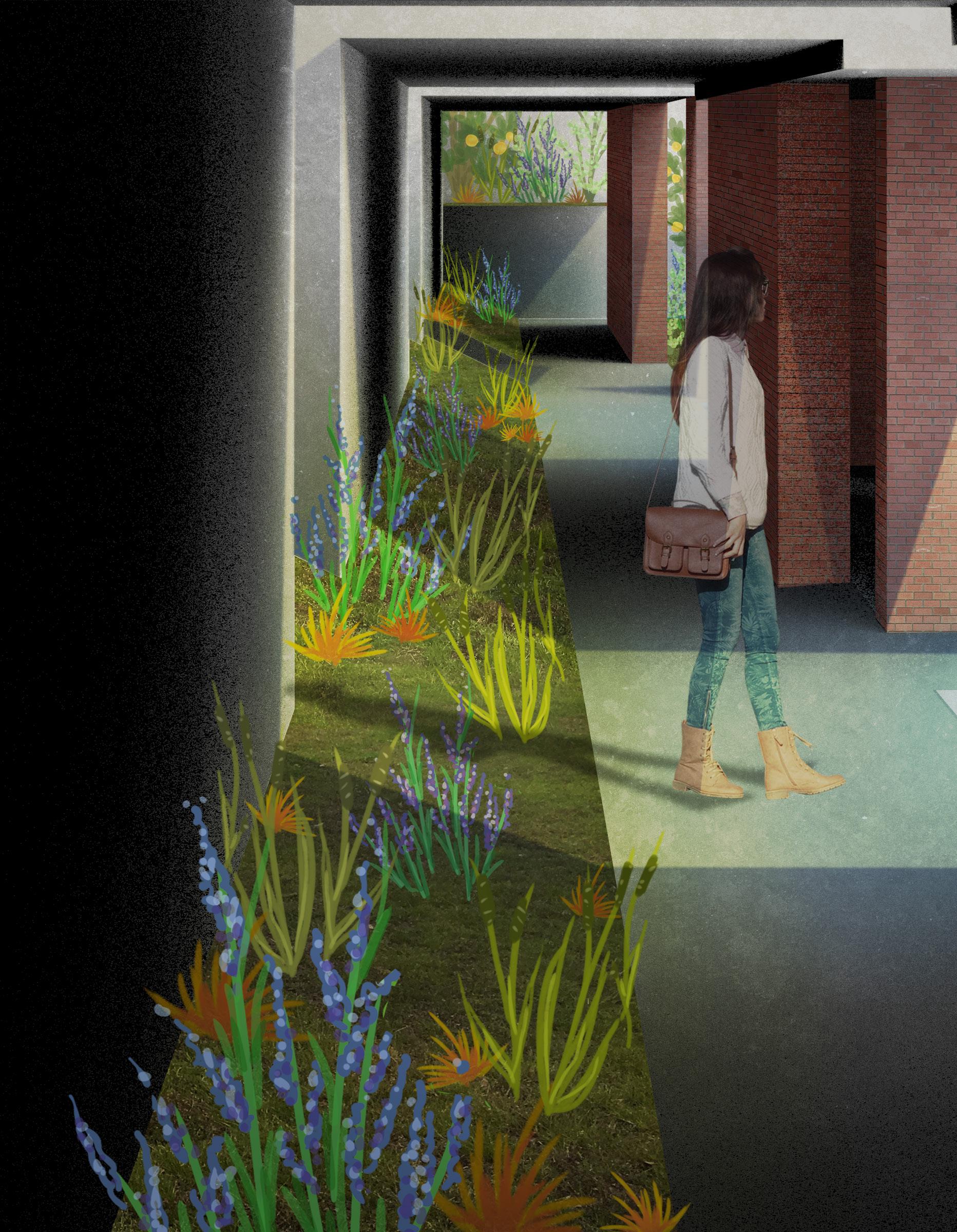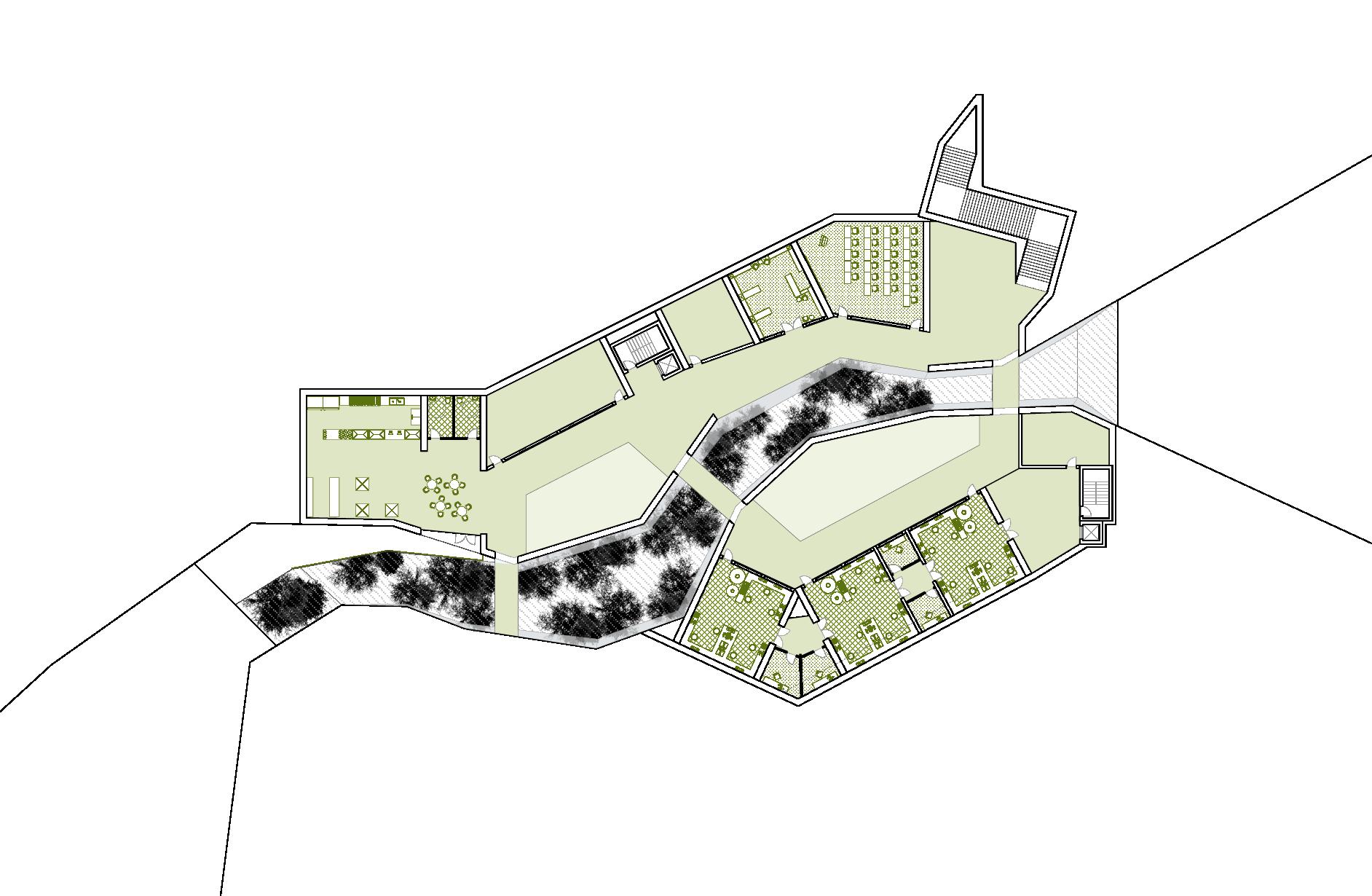 This studio challenged the students to design spaces for healing, specifically for healing the mind. There is a strong connection between one’s interaction with nature and healing process, thus it is was the main concept of this project. The building is eroded by the quiet landscape so that throughout the building greenery is always seen, fresh air always felt and lapping water always heard. This human existence with nature, can also echo the process of healing from mental illness itself in that healing comes from learning to come into balance with it.