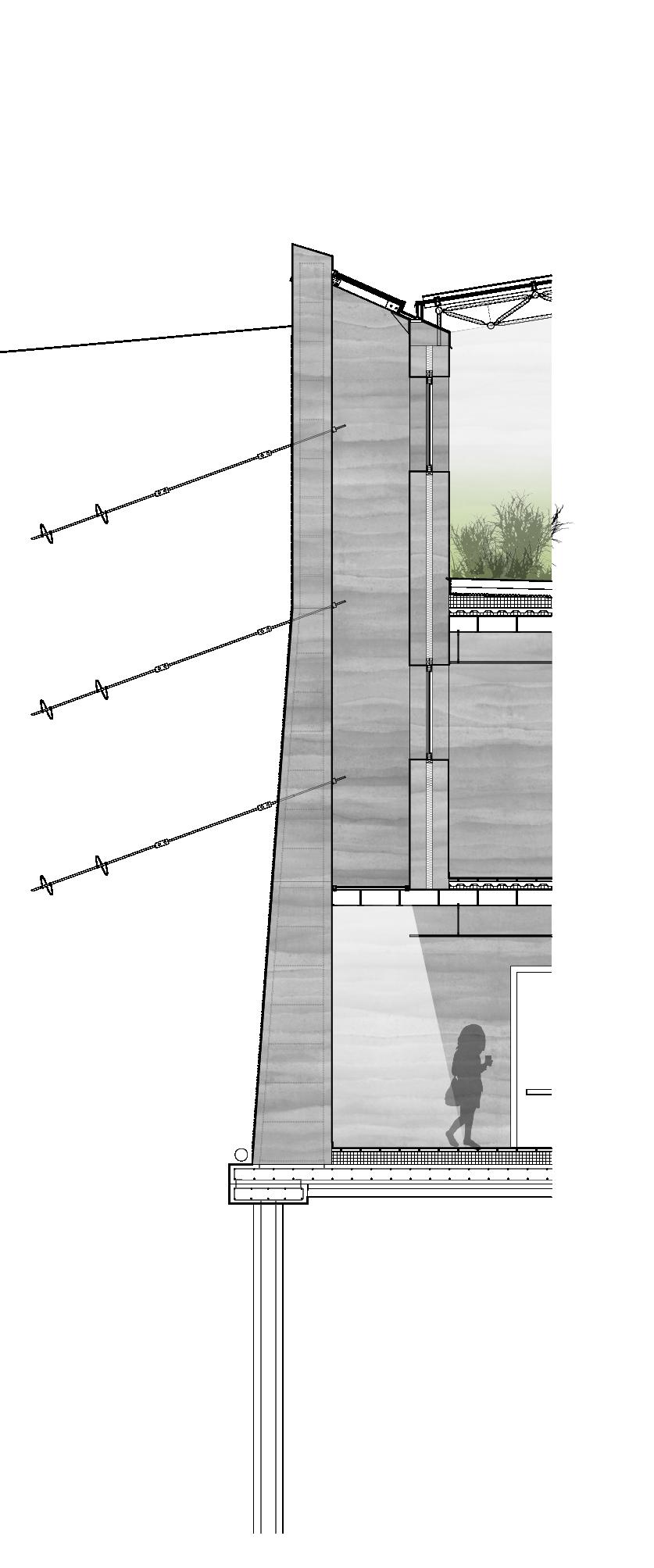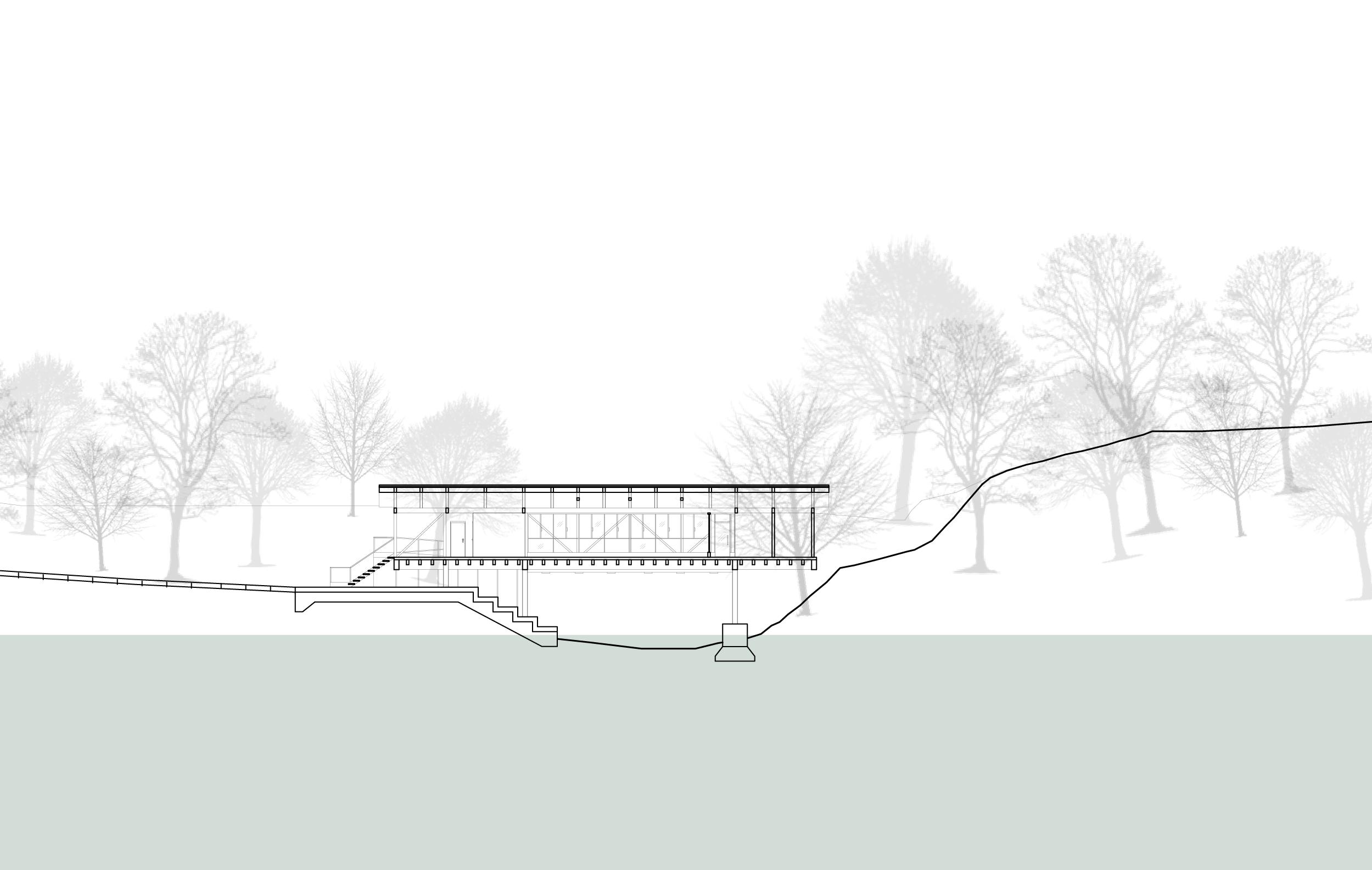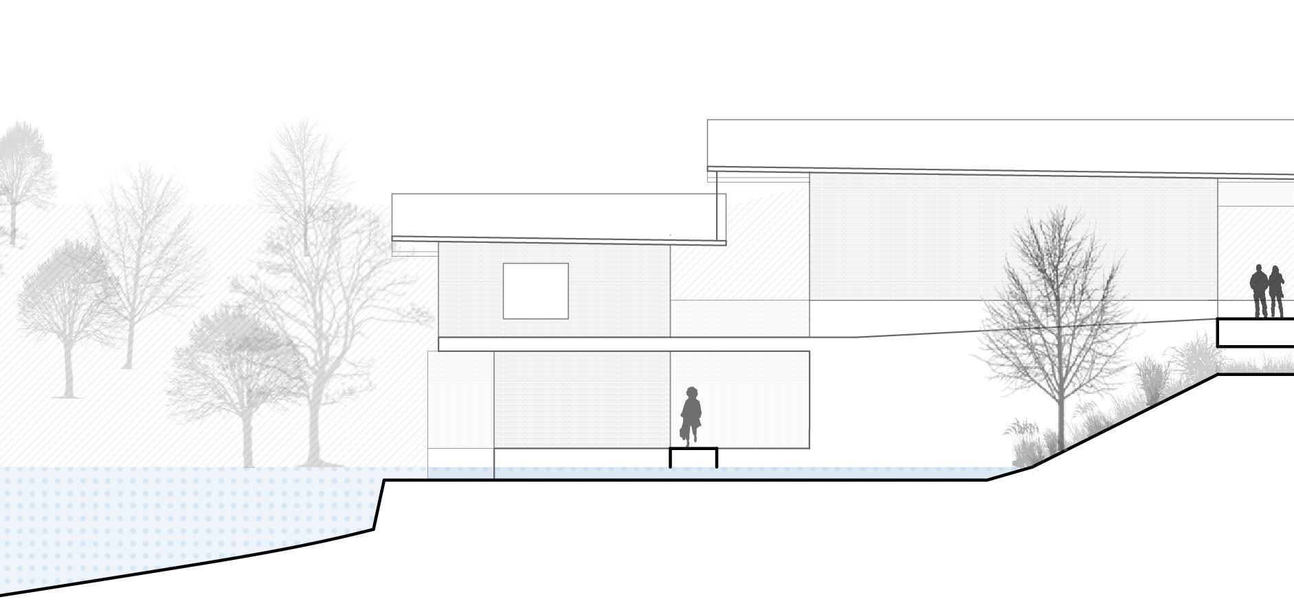 Section was a crucial view in which to approach this design. Many studies have highlighted the connection between healing and closeness to nature, specifically the association of mental health and water, a calming and ever present force in our world. This association inspired the site selection and the concept of the building.