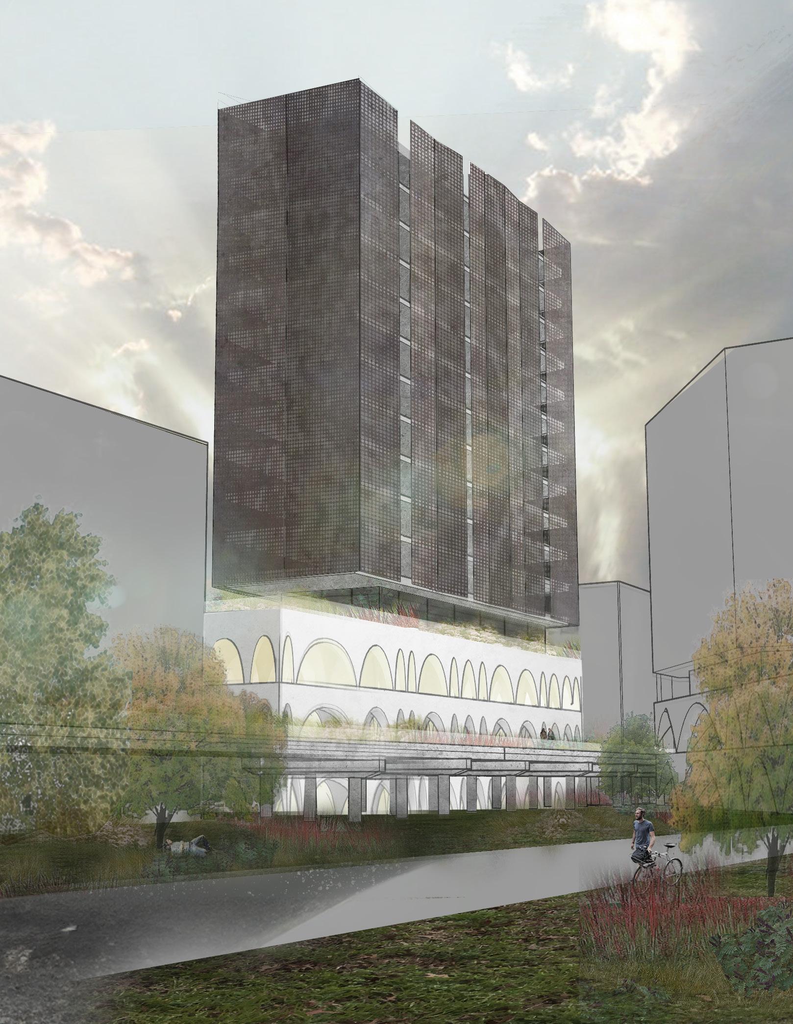 Highways in this country have a reproachful history of enabling unsustainable suburban sprawl, cleaving cities along cultural lines, and have become a symbol of the vehicular culture that is destroying our planet. This project first seeks to re-imagine these spaces as a mechanism for bringing people together, restoring the public space that once was, and allowing for sustainable growth of the city. Beyond a larger urban redevelopment strategy, this project also explores design for economic diversity, social justice, and a unique urban character.