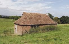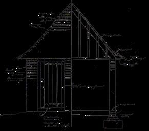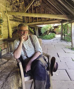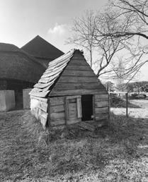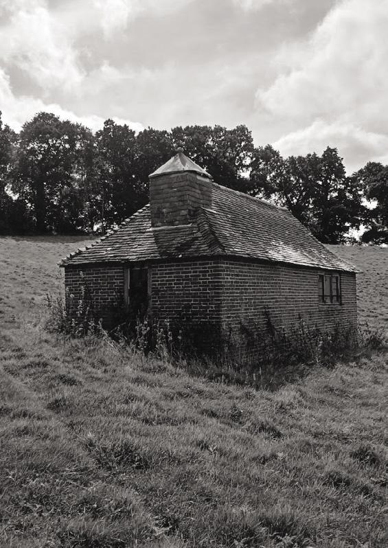 THE DOG KENNEL has never actually been a dog kennel but instead was built to house a circular saw bench for cutting firewood. There is a hole in the wall of the Thatch opposite, where the belt went through an electric motor. Motor and belt are still there, but now the little Massey Ferguson tractor does the hard work. When required the whole structure was taken apart into six sections. Sarah Hudson, Gardener