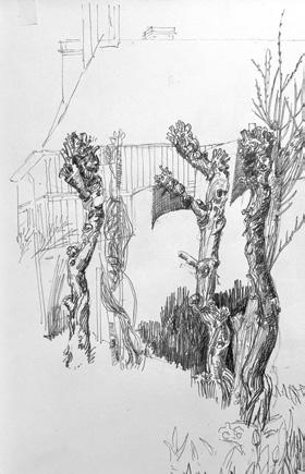 Daisy’s weekly letters to Christo at school are a valuable garden record, such as when she reported on November 6th 1931 that two old pear trees had been cut down in the High Garden. When she wanted things done, against the wishes of Nathaniel, she would sometimes conspire with the young Christo to work out a way forward. One success was the removal of the yew arch on the front path, which Nathaniel was persuaded to arrange in time for her birthday in November 1931, and which much improved the view of the house from the gate. ‘We must plead hard with Daddy about the mulberries’, she wrote to Christo in November of that year, after reporting that she was furious with his plans to remove all branches below 6ft from the ground. In a follow-up, she says, ‘This morning Sands & I pruned the mulberry trees, & if only Daddy will be contented with what we have done, they don’t look at all