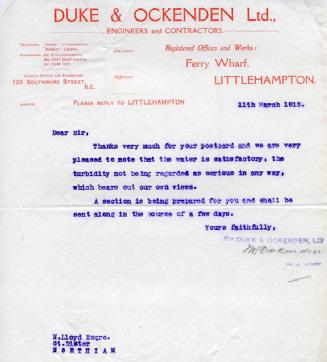 52. Early difficulties with water supply at Dixer Roy Brigden