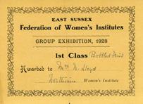 There was usually, too, whatever the season, some craft endeavour in progress, often with family involvement as a bonding activity between mother and children. The results can still be seen around the House. The little embroidered footstool in the Solar, Daisy was finishing in June 1937 and commenting on the progress of Christo’s version. In November, she was preparing to make a new needlework cover for the high-backed armchair in the Great Hall using a design lent to her by the needlework shop Carter & Parry in Hastings – but first she would consult with Christo to see if he approved. In these years Daisy was an active participant in the work of the Women’s Institute and its off-shoot, The Guild of Learners of Home Crafts. Certificates awarded at their shows are commonplace in the archive, including one from the NFWI exhibition in London in 1938 where the rug Daisy had been invited to make incorporating her ‘N.L.1938.D.L.’ motif was part of the show.