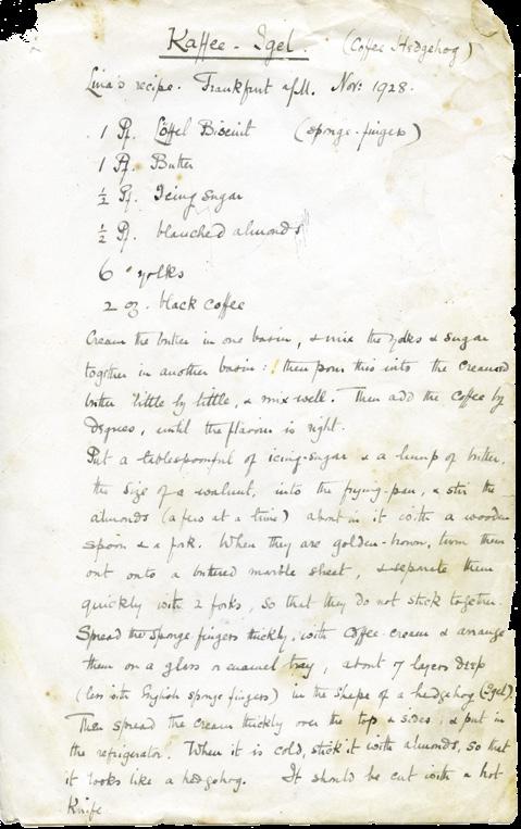 Daisy kept a large dossier of recipes written in her own hand. This one, for Kaffee Igel (Coffee Hedgehog) she collected from her friends in Germany in 1928.