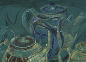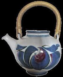 Christopher Lloyd owned around 30 pieces of pottery by Alan Caiger-Smith. The earliest is a jug acquired in 1963 from an exhibition at the Primavera Gallery in London. In the 1990s Christo and Fergus went annually to the Aldermaston Pottery to buy more pieces. When the Pottery closed in 2006 Alan retained samples. In 2014 a year after an exhibition at Dixter, which Victoria Williams curated, this collection of over 230 examples dating from 1950s to 200, was gifted to the GDCT. They include characteristic tin glaze and red lustre ware, as well as a huge range of items, all decorated in typical sweeping brushstrokes and swirling arabesques.