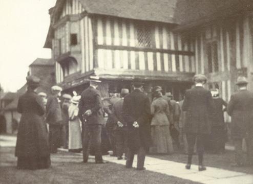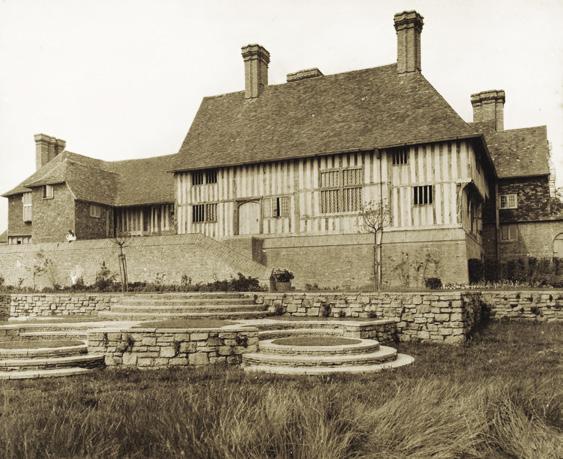 The wooden entrance gate was made on site at Great Dixter over 100 years ago (the original drawings are in the archive), complete with squeaky two-way hinge. This photo was taken in 1926.