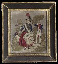This 19th Century woolwork picture of a drummer girl hangs in the Solar. It is Isabelle Sambrook’s favourite piece in the House. It is beautifully sewn in tent stitch in red and blue thread with gold froggings on the jacket. It was listed in the 1998 Sale Inventory and Valuation Index of the contents of Great Dixter at £60. Gillian Roder
