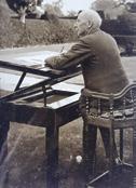 THE DARKROOM down in the basement was created by Quentin Lloyd in the early 1950s. He was a keen photographer and used his DIY skills to install the necessary electrics and equipment. Some of the postcards sold to visitors in those early days were made from photographs taken by him. He inherited this interest from his father Nathaniel who took many thousands of photographs of his family, of Great Dixter, and of other historic buildings around the country. Coming from an earlier age of photography, however, Nathaniel did not process his images himself but instead sent them away to Seaman & Sons in Derbyshire to be printed.
