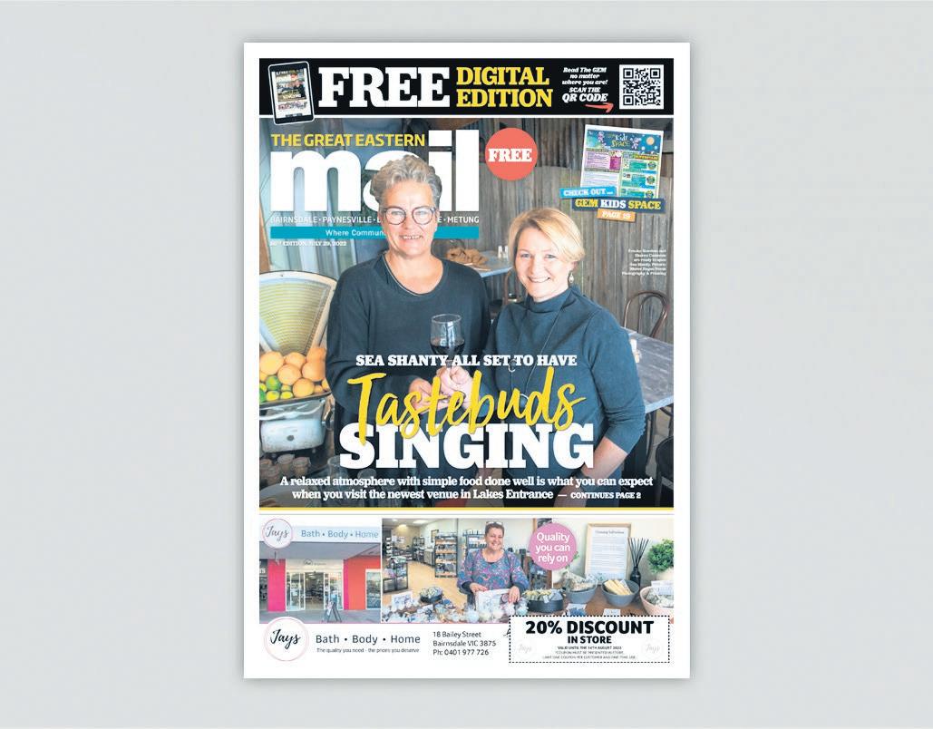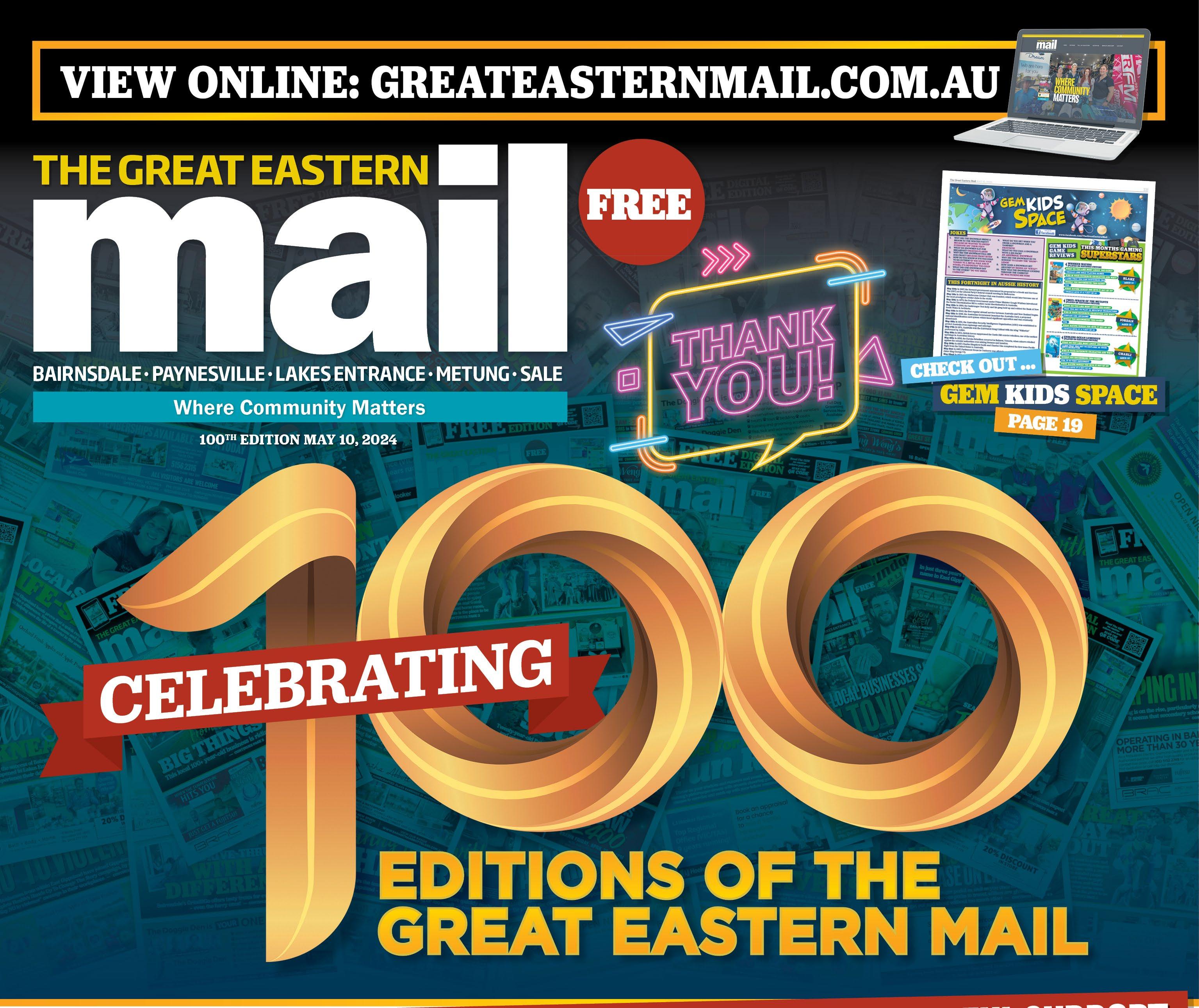 The whole team at the Great Eastern Mail wholeheartedly thanks our advertisers and distributors for their ongoing support, and our 20,000-plus readers per fortnight for making this milestone possible. We look forward to continuing to publish more of what matters most to you.