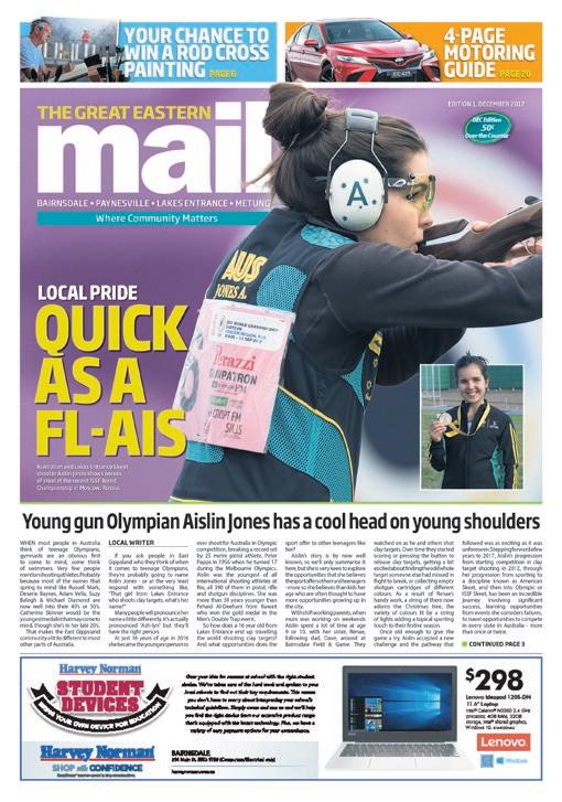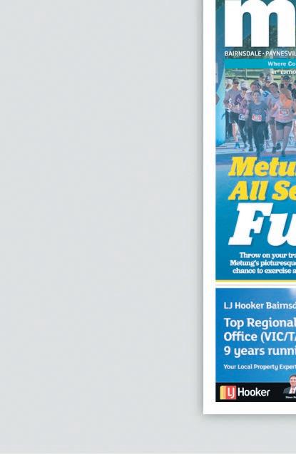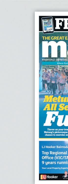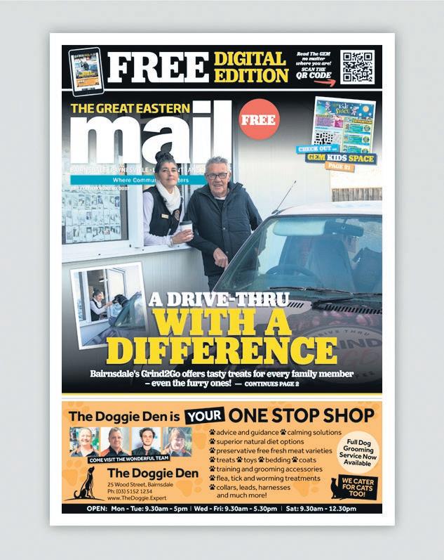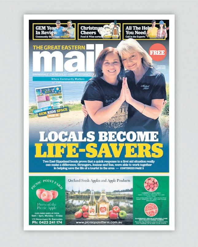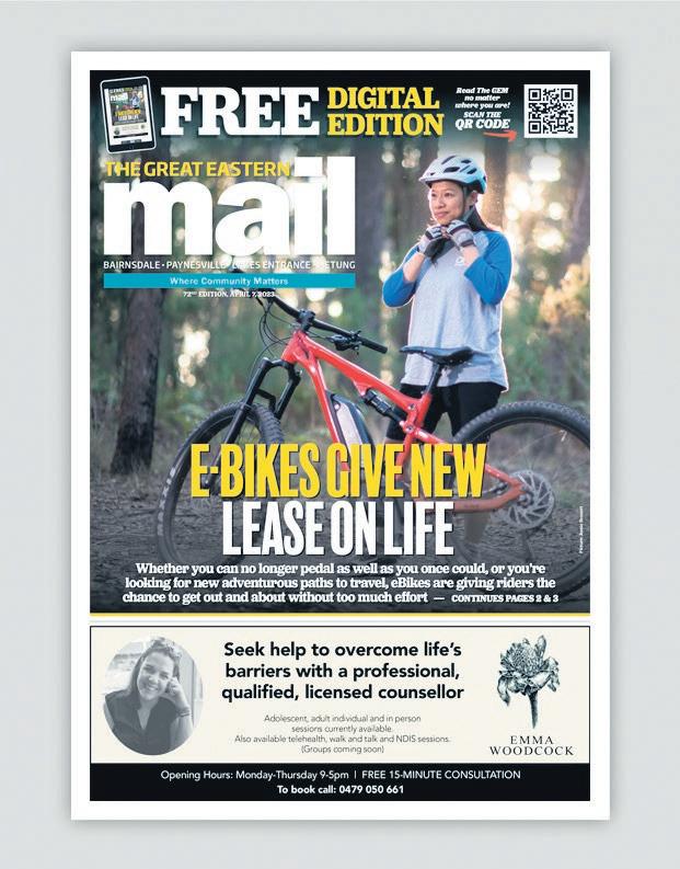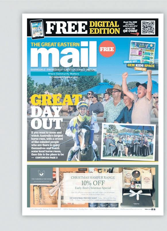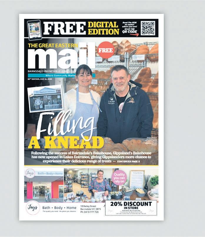 about our ad and editorial feature package" Contact Jason today on 0428 366 651 or email jason.cherry.gem@gmail.com BAIRNSDALE • PAYNESVILLE • LAKES ENTRANCE • METUNG • SALE Where Community Matters THE GREAT EASTERN