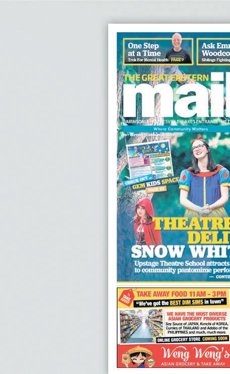 The Great Eastern Mail MAY 10, 2024 23 Certied for quality, safety and environment Find out more: www.battbrothers.com Email us: kyle@battbrothers.com ❱ Tree Pruning & Removals ❱ Slashing ❱ Weed Management ❱ Forestry Mulching Prompt & Professional tree Services. Get a free quote today, ca11 1300 BAT BRO Certied for quality, safety and environment Great opportunities are available to promote your business through both our print and online media Newspaper | Facebook | Instagram