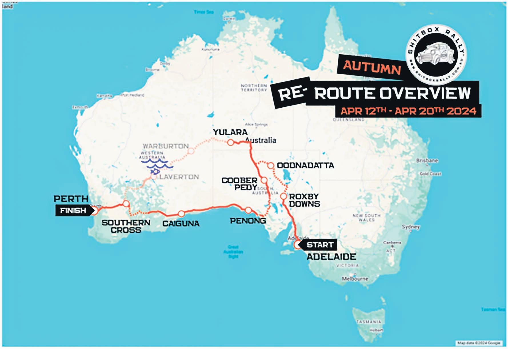 This year, the rally proved to be longer than expected, as the original route out of Uluru had to be changed because the Great Central Road was closed due to flooding forcing the rally to make a diversion
