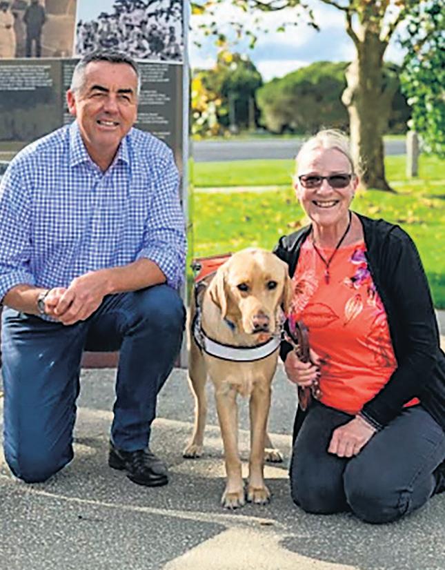 Pictured: Federal Member for Gippsland Darren Chester with Wendy Woodward and her four-legged companion 'Victoria' who has changed her life.