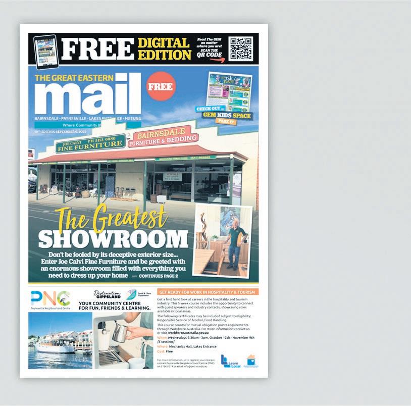 “When it comes to advertising, keeping costs down — especially in traditional media like a newspaper — is a big deal these days, so the GEM is fantastic value in that regard. And of course, the reach that we get through the GEM is equally important. We’ve had responses from readers in Sale and Maffra, as well as the Bairnsdale region,” he says.