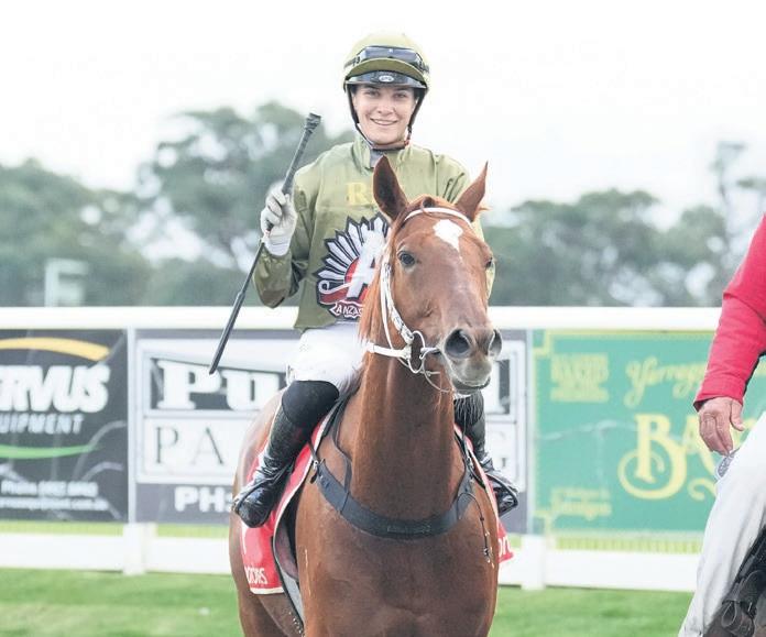 Fine Weather ridden by Emily Pozman wins the Ladbroke It! Handicap at Moe Racecourse on April 25. Below right: Saufiana ridden by Sally Wynne wins the Ladbroke It! BM58 Handicap at Sale Racecourse on May 5. Pictures: Scott Barbour/Racing Photos