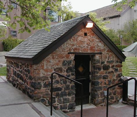 Another local tale is the history of this one-room building, built around 1880 by Sheri Hardy, and constructed from black lava rock hauled in from the foothills surrounding the city. It still retains the original iron bars in the windows and several bullet holes in some of the woodwork. Therefore, some say the building was used as a jail. Others say it was for storing grain.