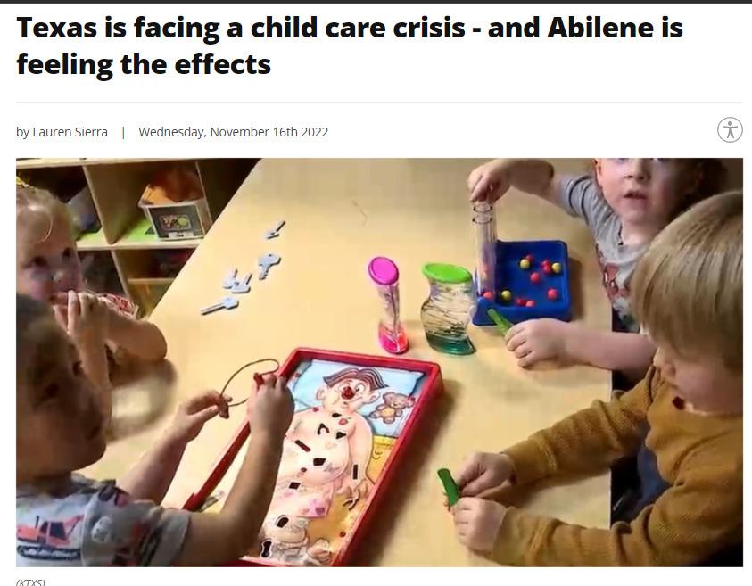 3.1 MILLION Texas workers at risk due to lack of affordable child care+