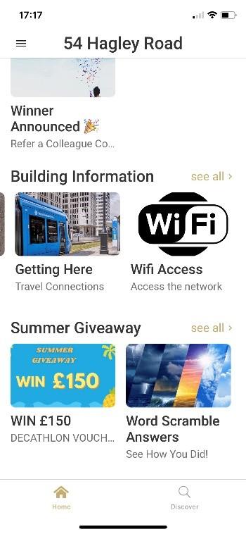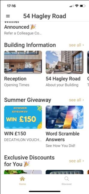 You will be given access to the 54 Hagley Road App which gives you information regarding the building, travel information, details regarding the meeting rooms, café menus, offers with external organization and more