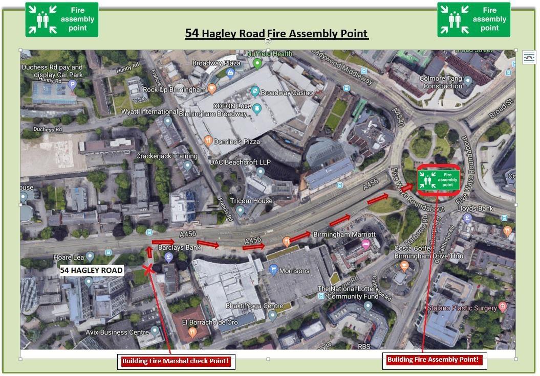 The main assembly point for the building is Fire Ways Underpass, tenants wishing to locate at an alternative location must advise the Building Management Team immediately.