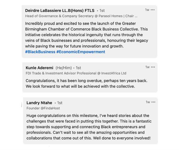 Wejustwanttoextendahugeandheartfeltthankstoeveryonewhohassupported theBlackBusinessCollective'ssoftlaunchandcommented,likedandsharedour announcementonLinkedIn.