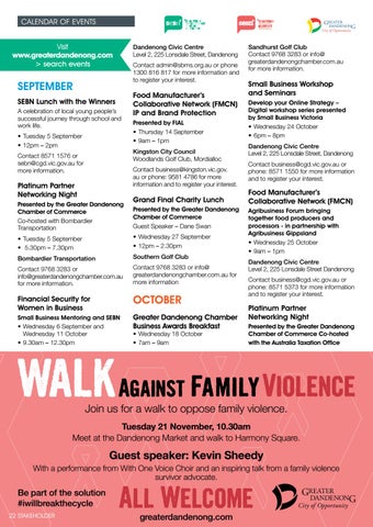 Contact 9768 3283 or info@ greaterdandenongchamber.com.au for more information