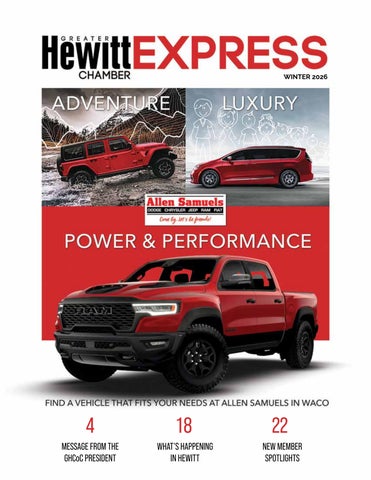The Greater Hewitt Chamber is excited to be celebrating our 40th anniversary this year! Inside this edition of our award-winning directory, you'll see why Hewitt is known for its safety, schools, quality of life and affordability. We are proud to call Hewitt home and to serve such a wonderful community.