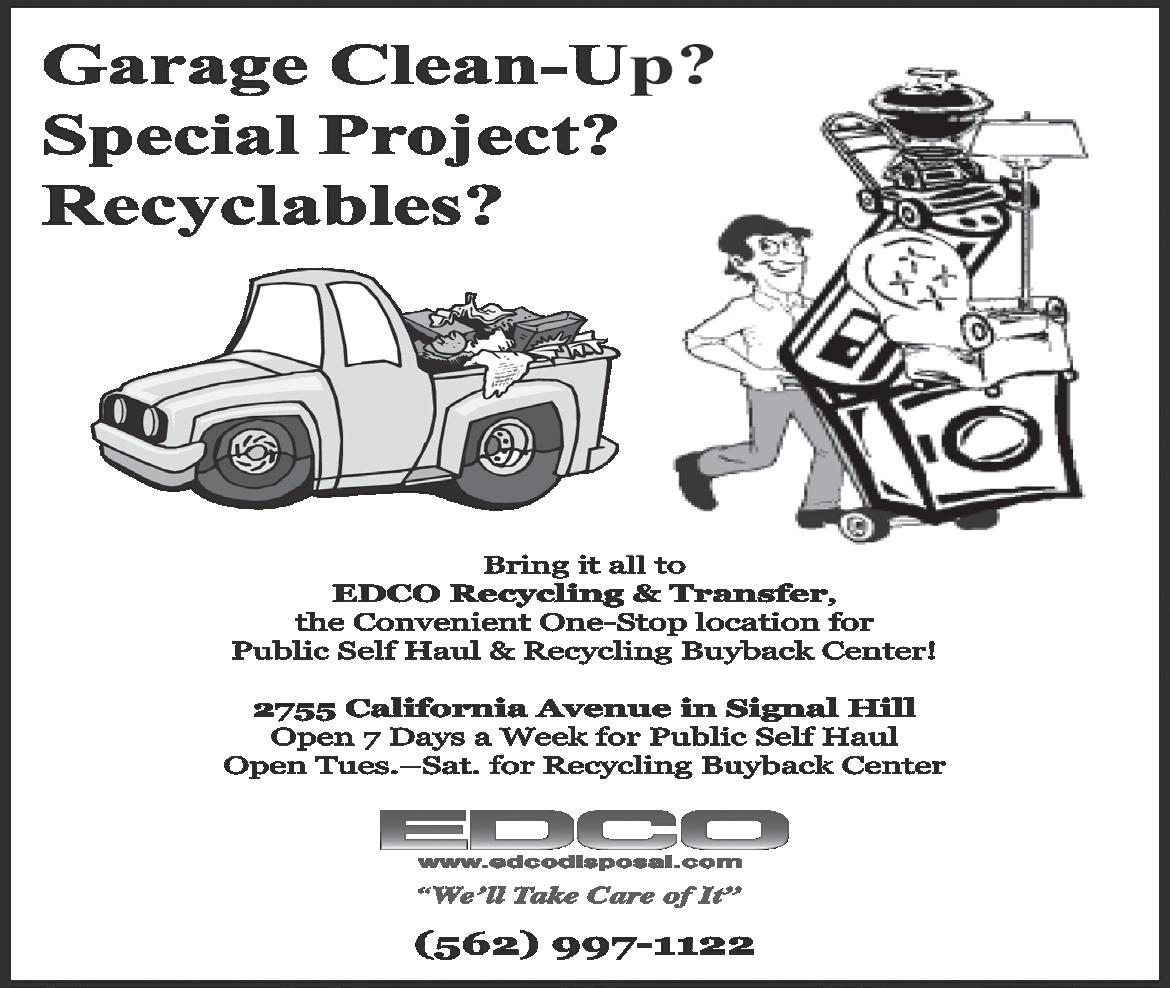 Hazardous waste and ewaste are accepted on the second and fourth Saturdays of each month at EDCO’s large transfer facility located at 2755 California Ave. in Signal Hill at no charge to Lakewood residents.