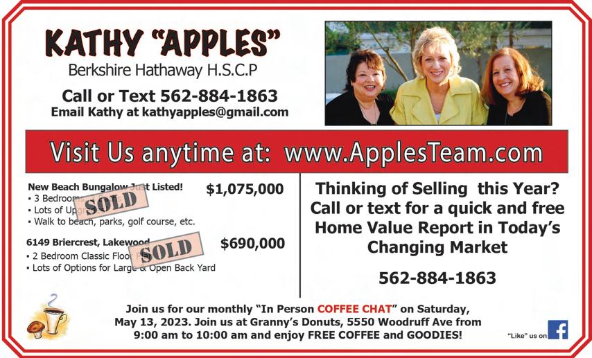 May 2023 Page 14 - Single Story Room Additions from Concept to Completion - 75% of work done in-house • Plan & Designing Service • Plans Drawn Ready for Permit • 38 Years of Design & Building Experience on Lakewood Models • Lakewood Resident since 1961 • Only work in Lakewood References Available Call Kyle (562) 278-2360 K.E.Y. Construction Lic#: 540452 Construction
