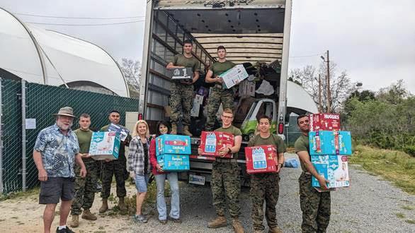 David Henseler of the South Bay Sunrise Rotary Club is the local Co-Chair for this program. Off-duty Marines volunteer to unload trucks.