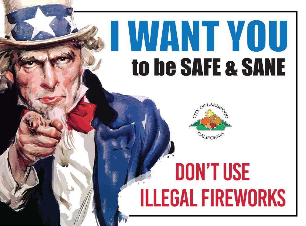 “Lakewood residents can have a lot of fun with safe-andsane fireworks,” said Lakewood City Manager Thaddeus McCormack, “and you won’t risk harming veterans, pets and neighbors in the process. Safe-and-sane fireworks are approved by the state fire marshal and do not go in the air, explode or have sound that travels far. Please do your part to help, so our community can have a safe and peaceful July 4th holiday.”
