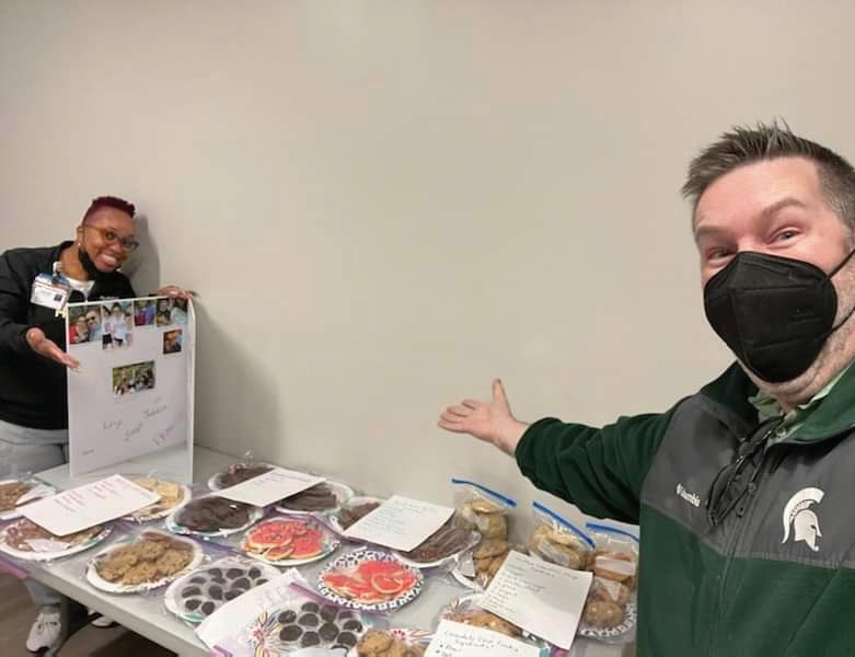 Wayne Hutchison took on the role of delivery driver, making the rounds at Karmanos to drop the cookies off to workers.