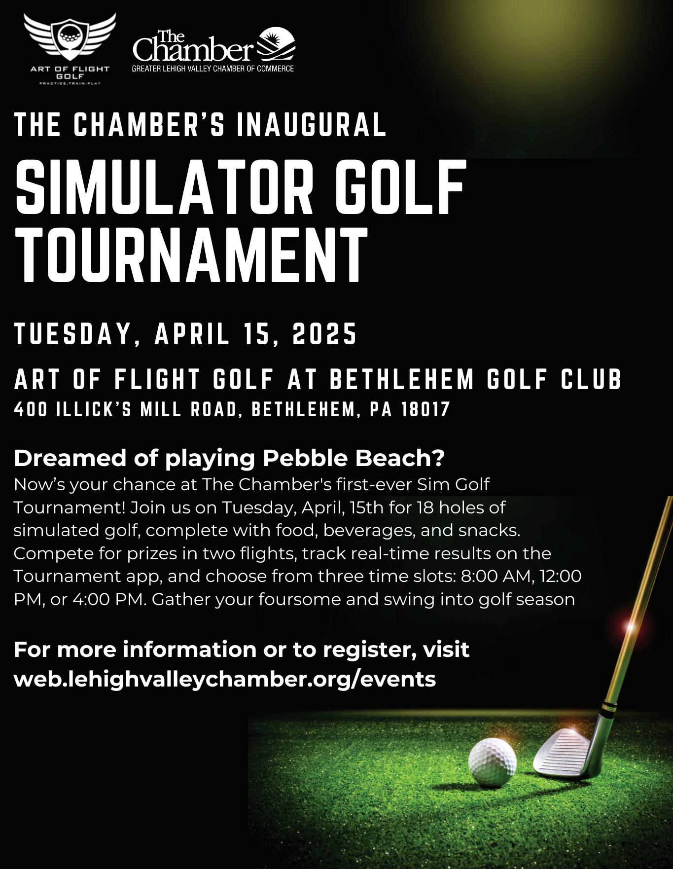 8am - The Chamber's Inaugural Simulator Golf Tournament at Art of Flight Bethlehem