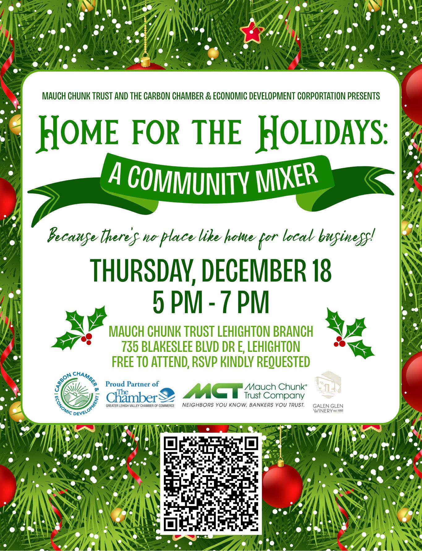 As we wrap up the year, we’re keeping the momentum going with two festive December gatherings: Happy Hour @ Bright Path Brewing on December 11 and Home for the Holidays: Community House Mixer on December 18 at Mauch Chunk Trust Company’s Lehighton office.