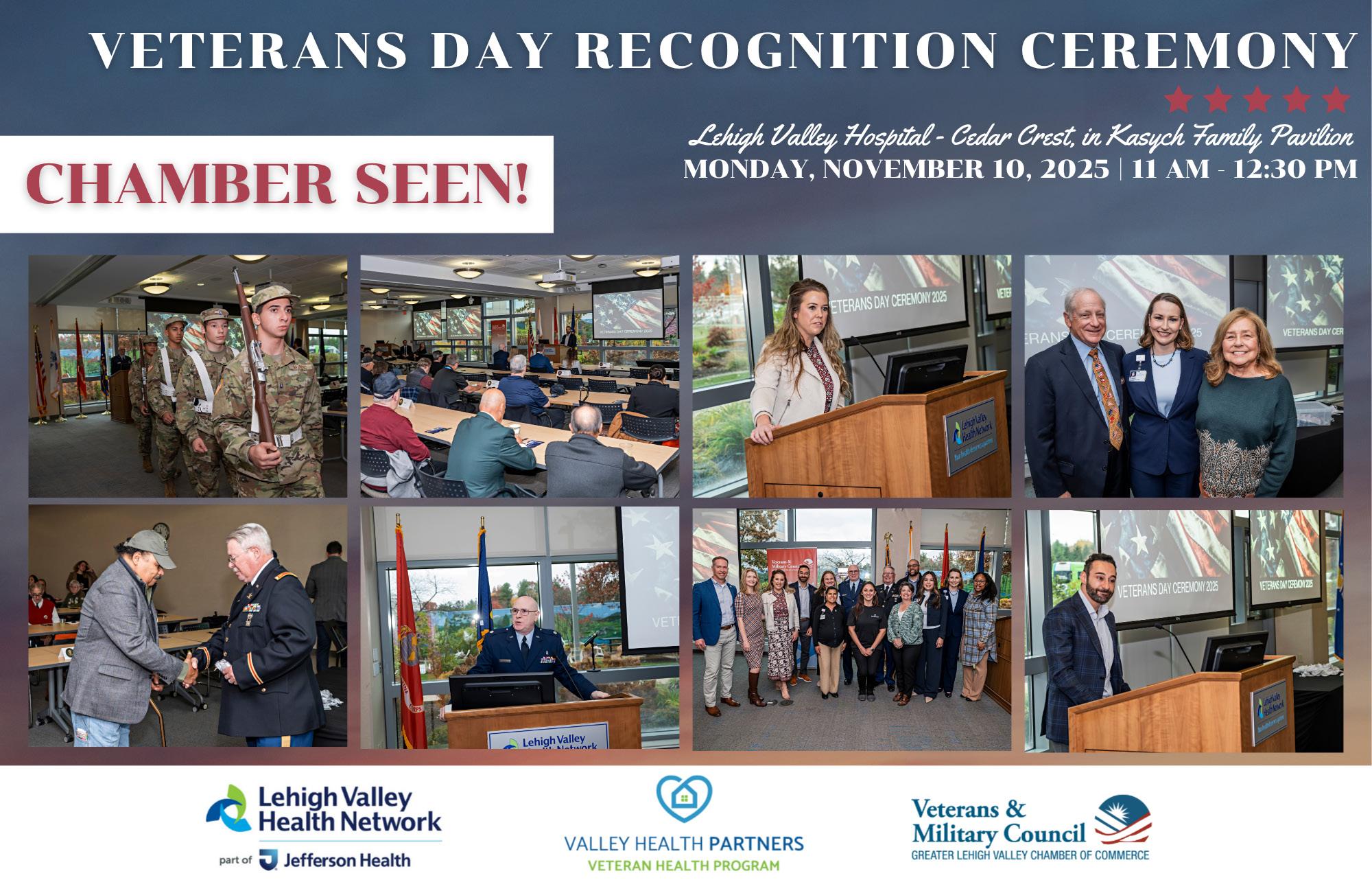 Lehigh Valley Health Network (LVHN), part of Jefferson Health, along with Valley Health Partners Veterans Health Program and the Greater Lehigh Valley Chamber of Commerce Veterans and Military Council, will mark Veterans Day with a special ceremony. Community members and colleagues who served in the Armed Forces will be honored and thanked for their dedication and sacrifice.