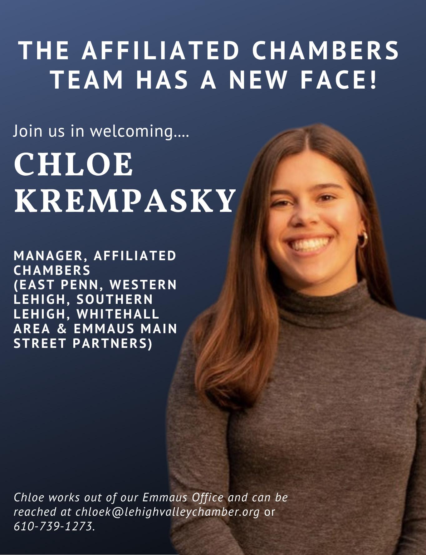 Manager, Affiliated Chambers (EMSP, EPCC, SLCC, WACC & WLCC) chloek@lehighvalleychamber.org