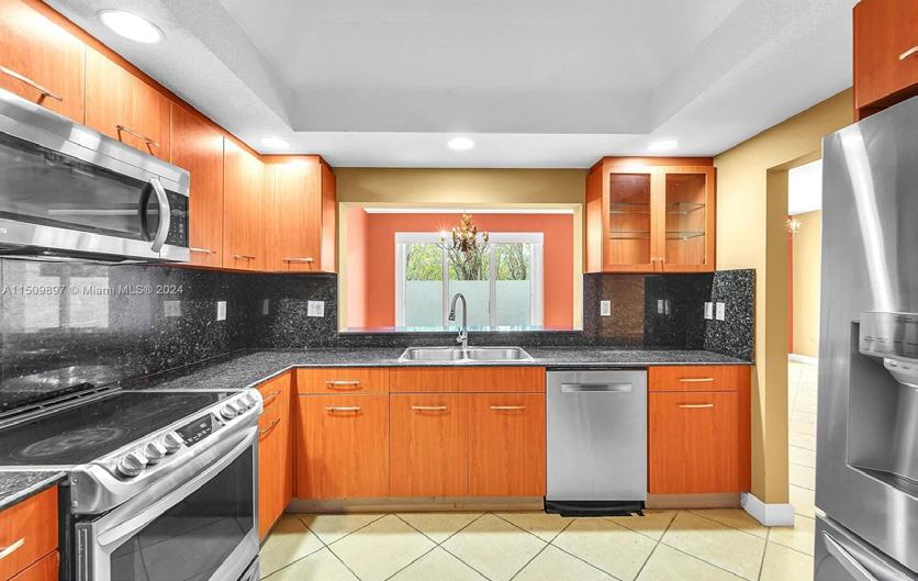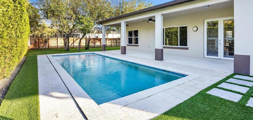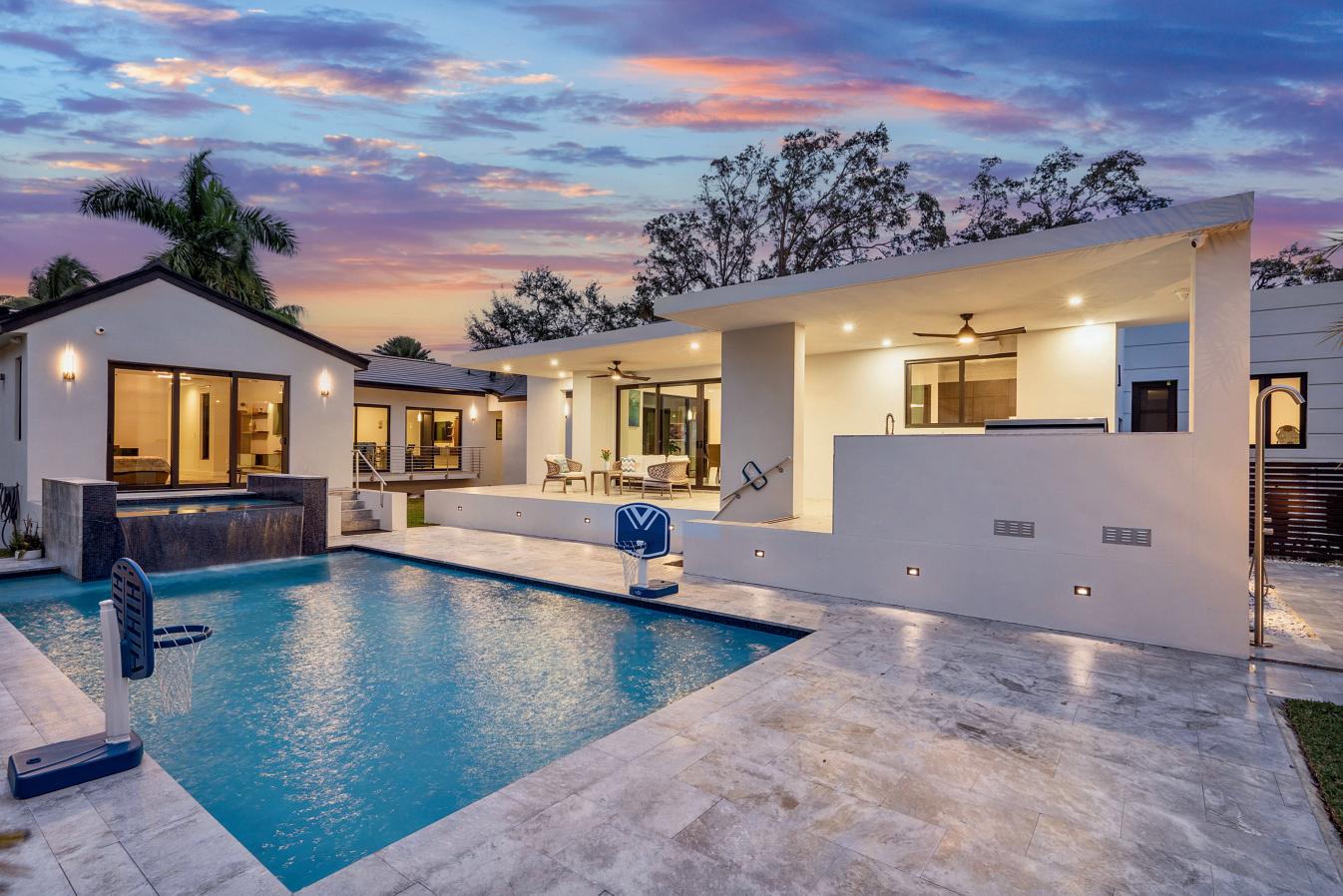 Newly-Built Extraordinary Miami Shores Listing East of Biscayne Blvd! Showcasing a Tesla roof with 72 hours of electrical energy, surround sound system, outdoor kitchen, heated salt system pool with a marble deck, outdoor shower, 2-car garage, carport, basketball court, alarm system with cameras. The chef's kitchen boasts Sub-zero and Wolf appliances, complemented by a luxurious Koehler bathroom.