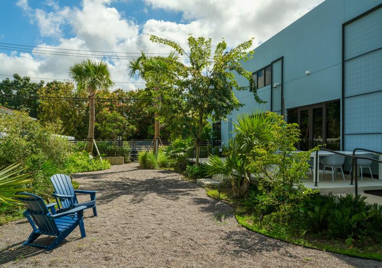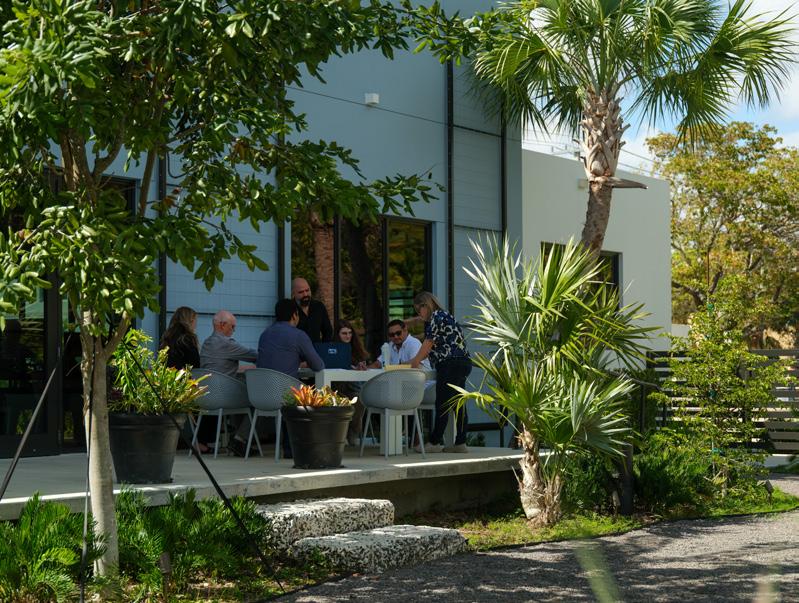 The garden has also become an extension of our workspace. We have Wi-Fi and work tables outside, so people can take calls, have lunch, or even work outdoors. Occasionally, a flock of parrots will settle into the gumbo limbo trees out front, which can be a bit distracting, but in the best possible way.