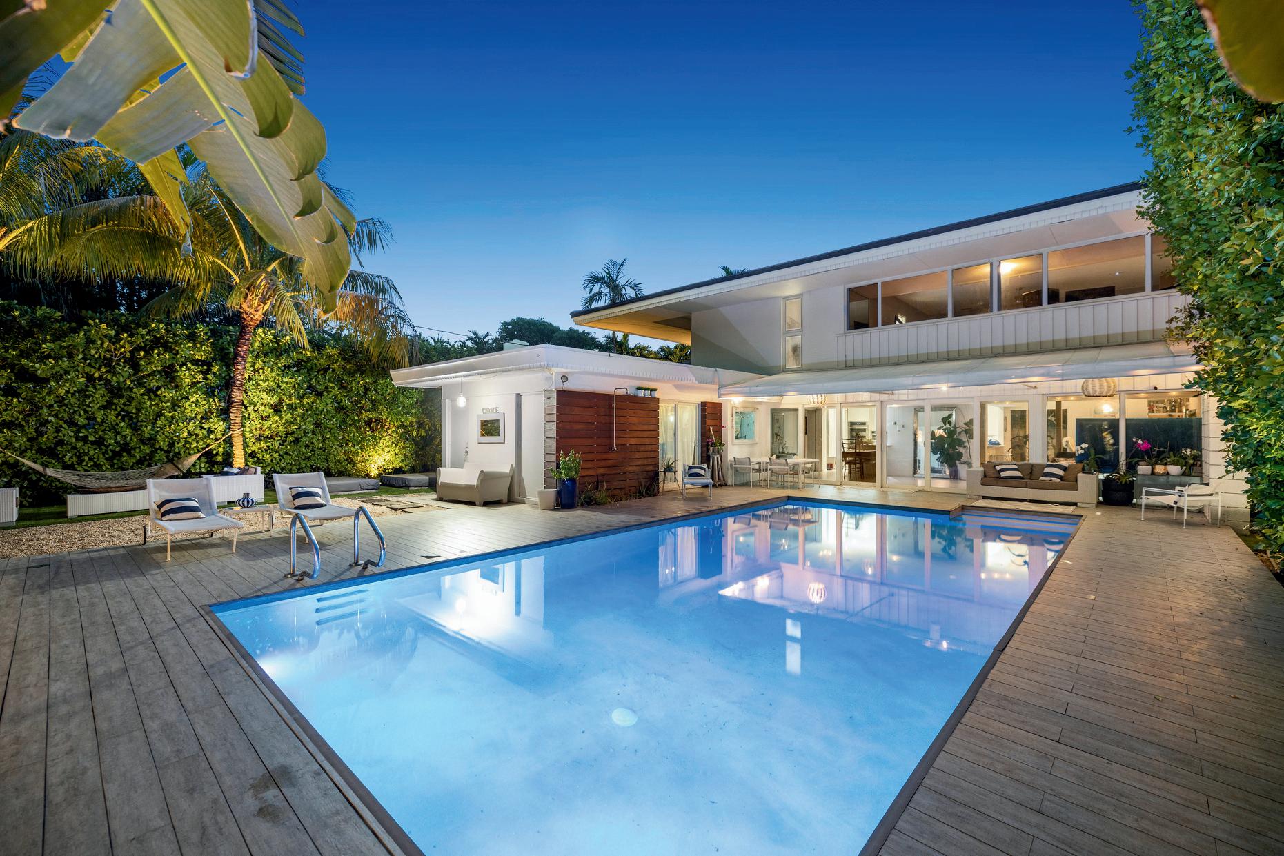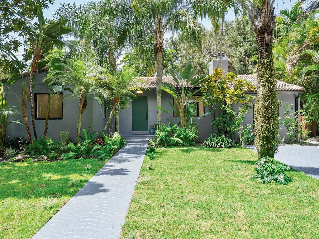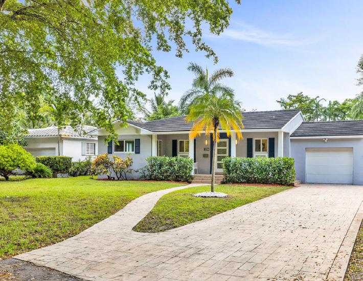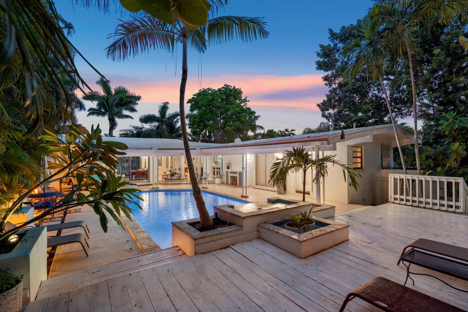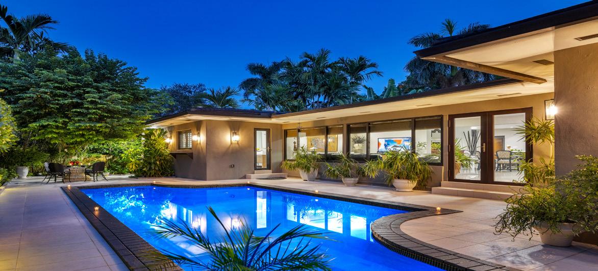 Welcome to River Breeze Retreat, where living is easy alongside Miami’s Little River. This adorable, updated midcentury modern jewel-box pool home lives large! Enter through a welcoming front porch into updated open-flow living, dining with cocktail bar, designer kitchen, and large window-lined sunroom which opens to lush rear gardens and illuminated step-in saltwater pool with spacious patio along the river— perfect for entertaining or relaxation. Sweet dreams await in the main en-suite retreat with updated bath and double walk-in closets, plus great guest room and second full bath down the hall for extra privacy. Fantastic features: fabulous character, large lot, wood floors, impact windows-doors, and conversionready one-car garage. Come on down to the river, where life is a breeze!