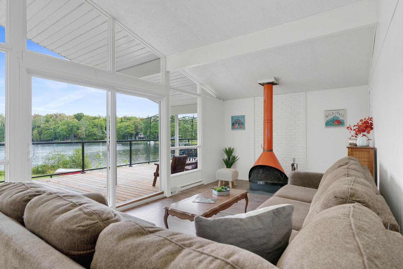 Wall of windows and cathedral ceilings allows the morning sun to drench the main floor in light.