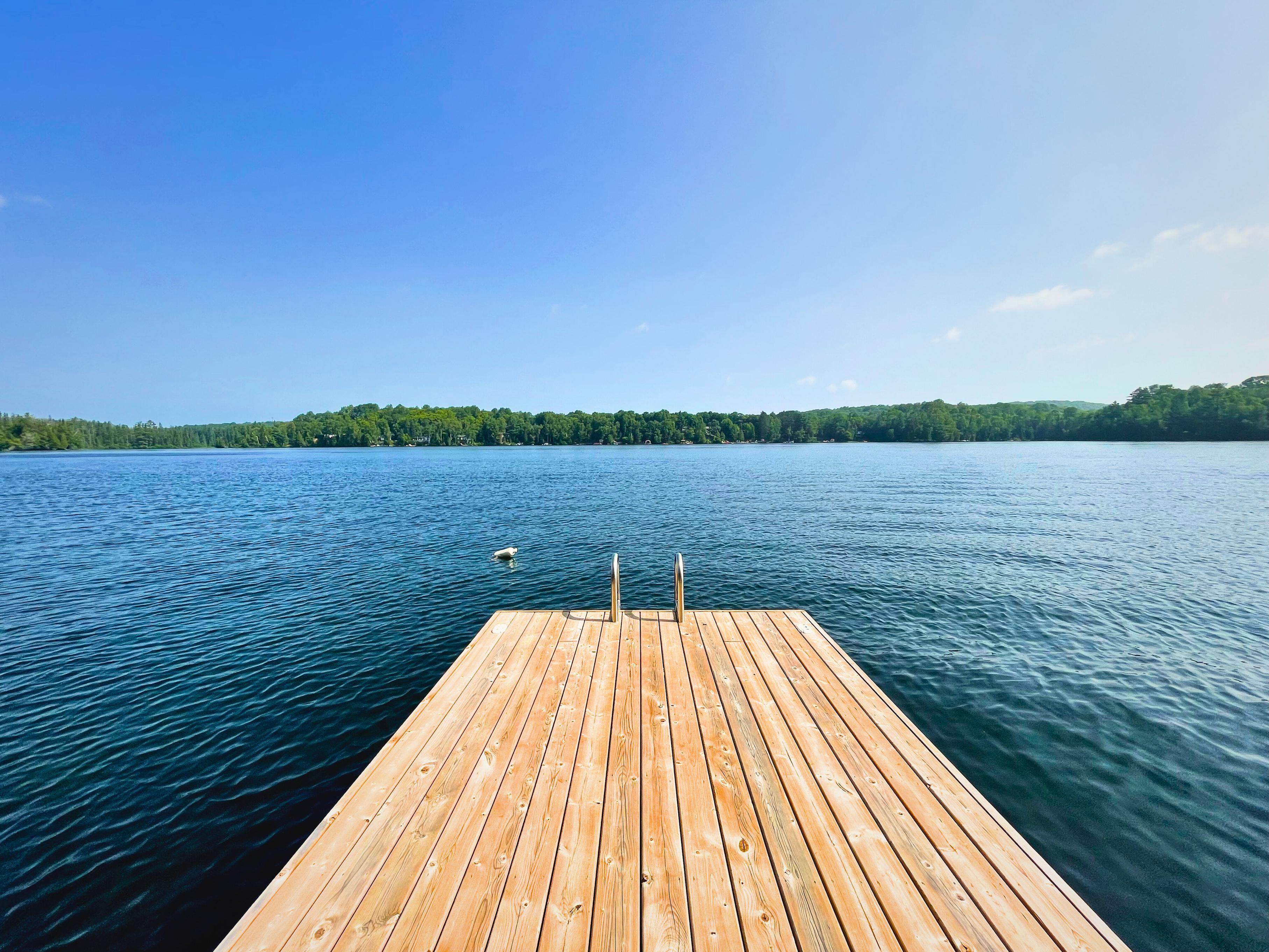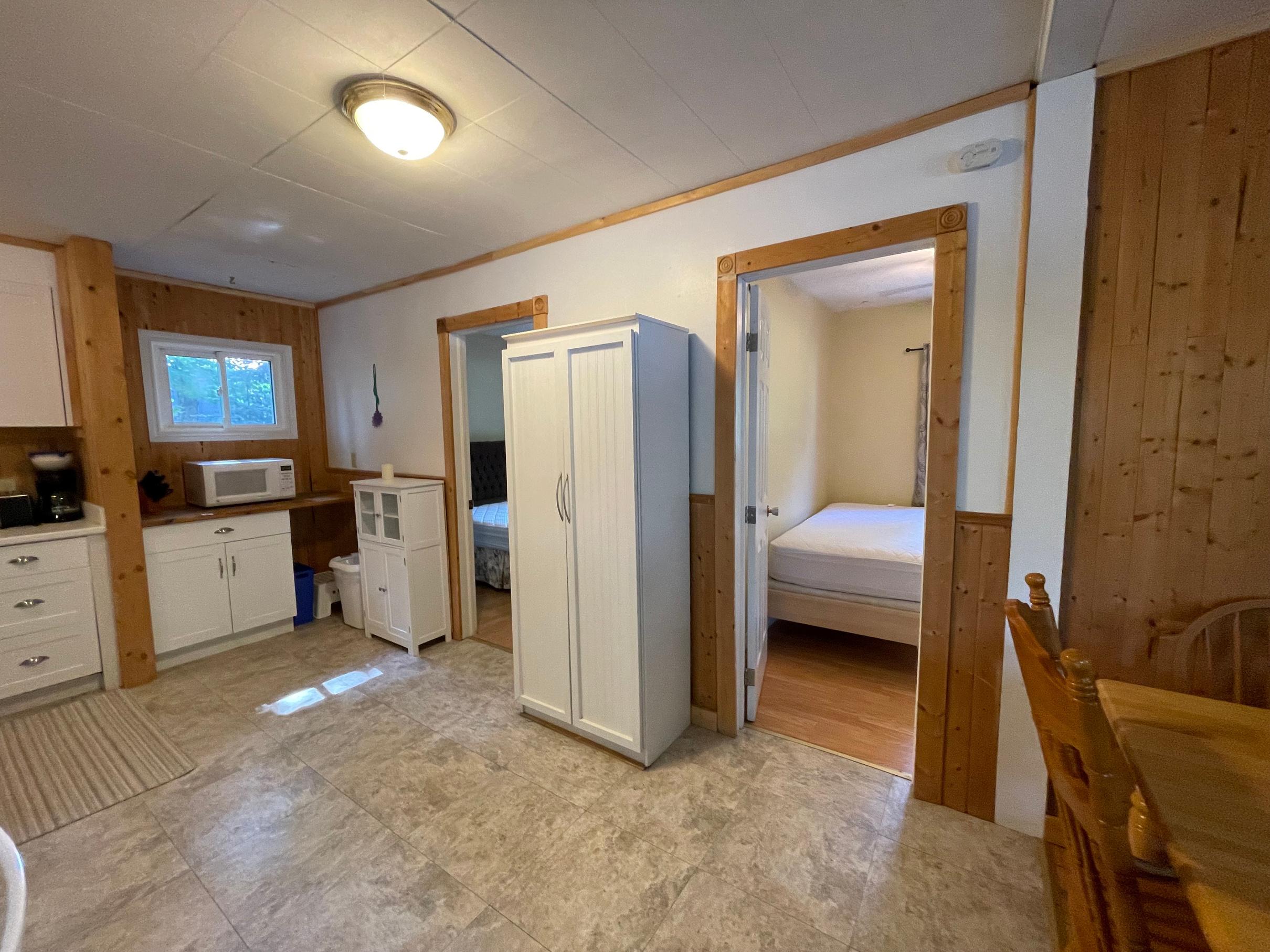 The largest winterized cottage with lake views from living room or private deck. Baseboard Heat & Propane fireplace.