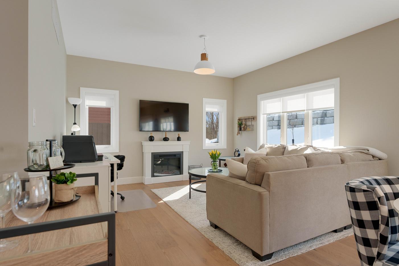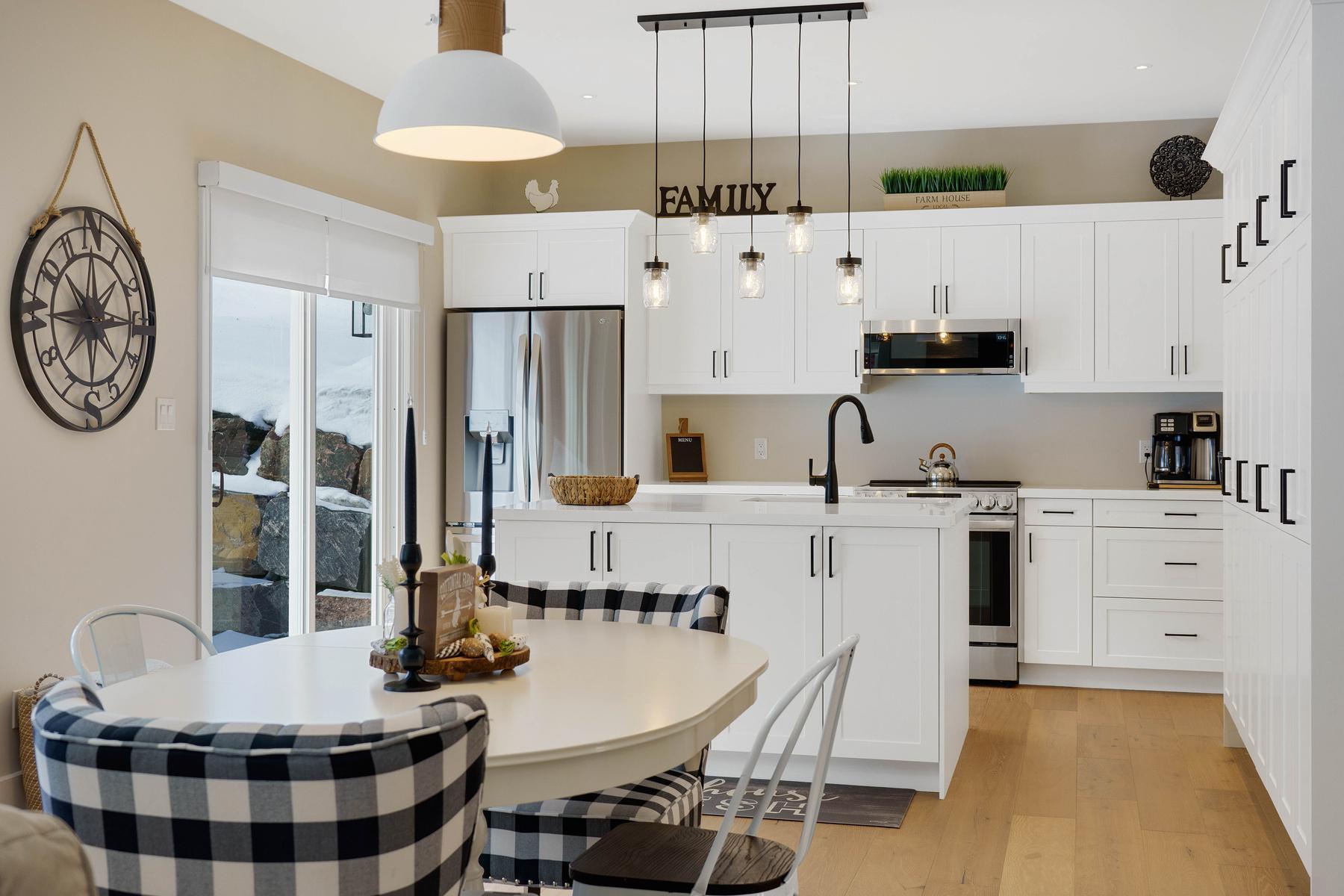 Custom built-in town beauty with attention to every little detail. Newly created in 2022 this home is super fresh and inviting. From the moment you enter, you will be impressed. This comfortable floor plan is ideal for empty nesters, families with teenagers, or retirees. A primary main floor suite offers a sunfilled picture window, a walk-in closet, and an alluring ensuite with loads of storage cabinets and double vanity. You will love the day-to-day enjoyment experience or entertaining in this open-concept kitchen/dining and living areas. Gourmet kitchen with white shaker cabinets, gleaming quartz counters, and a wall of pantry space. Walkout from the kitchen onto the granite low-rise step to the rear sodded yard. The basement is light and bright with oversize windows and window wells in all of the 3 bedrooms on this level. Lots of room for guests or teens. full 4pc bathroom located here too.