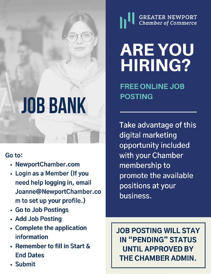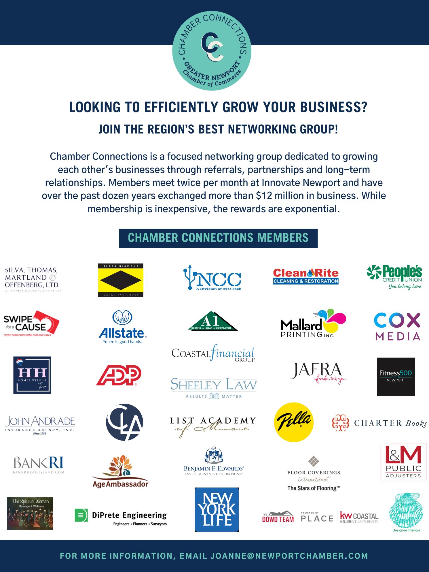 Once again, welcome to the Greater Newport Chamber of Commerce family, and thank you for joining. We are excited to embark on this journey with you and look forward to forging long lasting connections and achieving great milestones together.